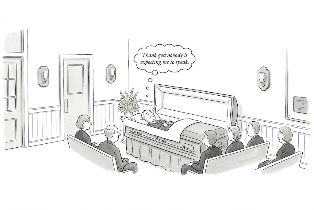 When ranking their greatest fears, Americans choose public speaking more often than they choose death. Jerry Seinfeld had a great bit about this: most people at a funeral would rather be in the casket than giving the eulogy.