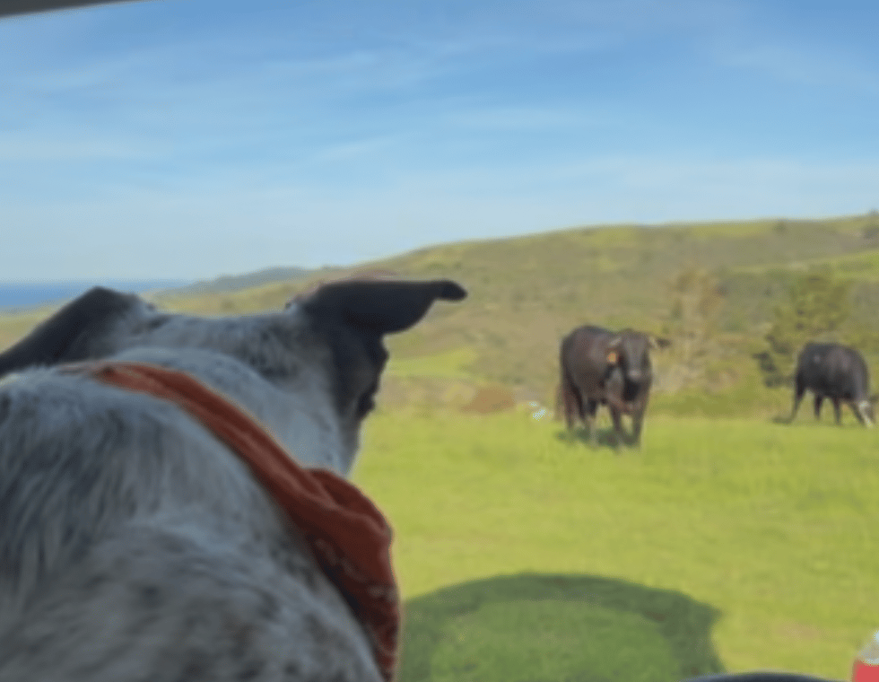 So this past Saturday, when we woke up surrounded by cows in the pasture, he immediately locked onto the herd, dropped into a crouch, and started circling them with choreographed precision.