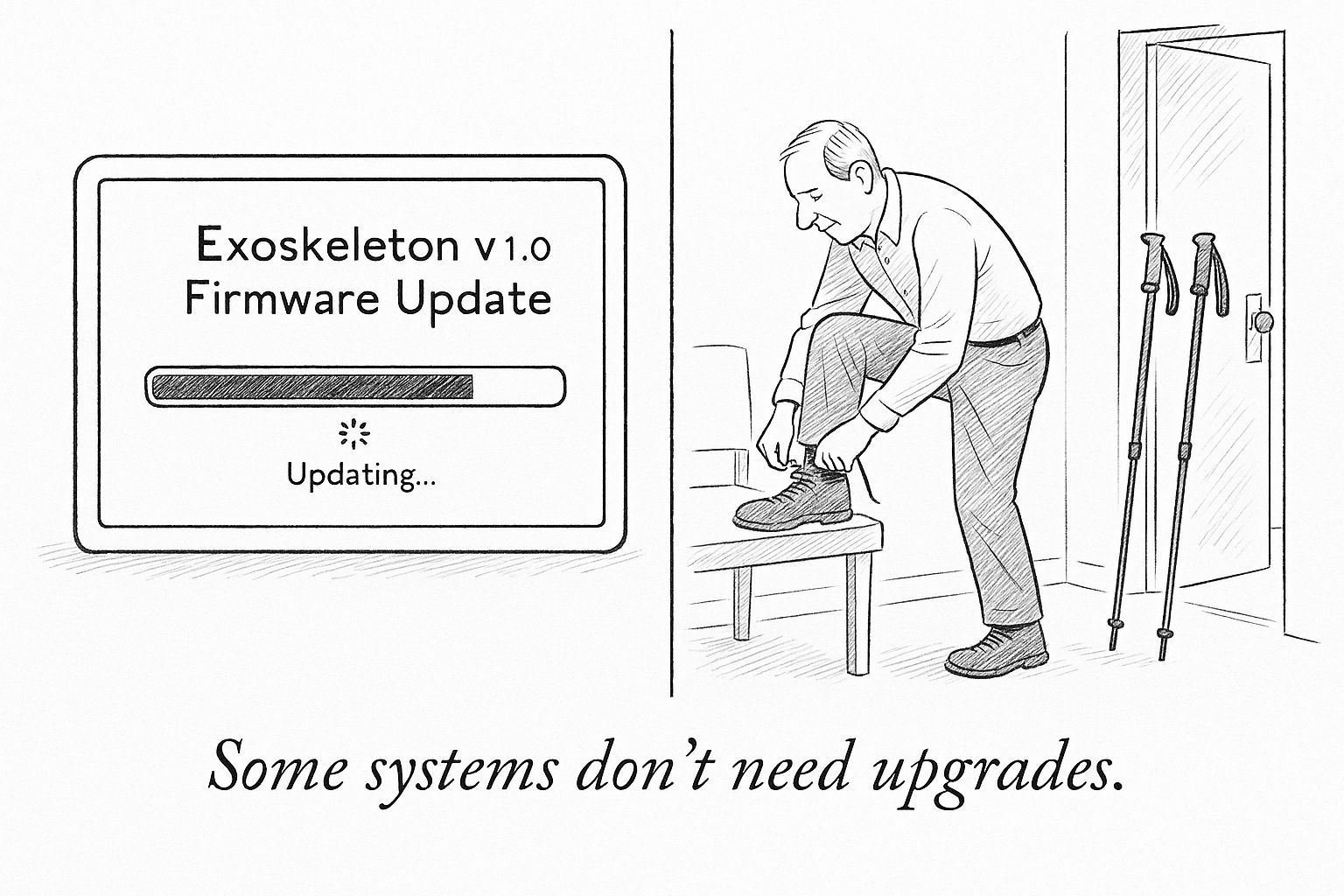 This Thanksgiving, I tried to offer a solution. I bought him a wearable exoskeleton. He tried it on, took a walk, and handed it back. It left me thinking about what technology can and cannot solve, and what we lose when we assume every human struggle is a product gap waiting to be filled.